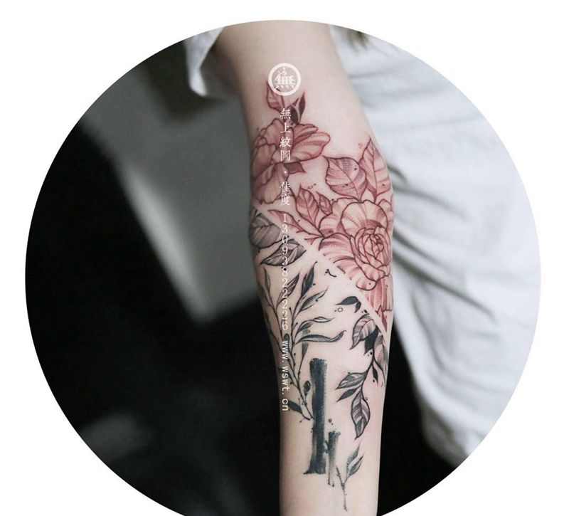 手臂 花纹身图片_成品植物手臂无上纹图欧美清新纹身图案