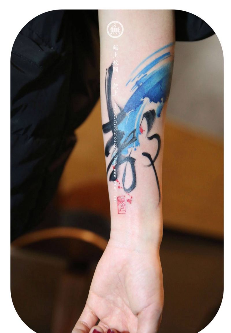 《静》纹身图片_成品手臂传统国画字符原创无上纹图水墨纹身图案