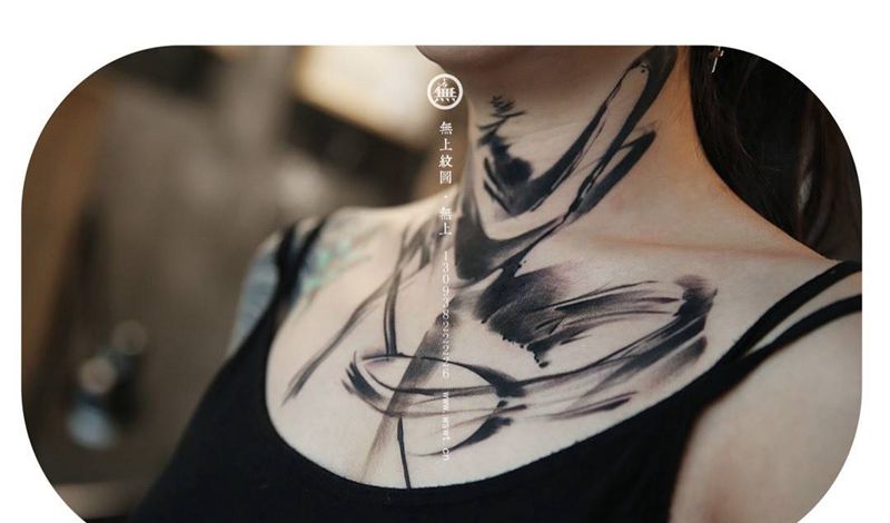 颈部书法纹身纹身图片_成品颈部传统清新原创字符无上纹图水墨书法纹身图案