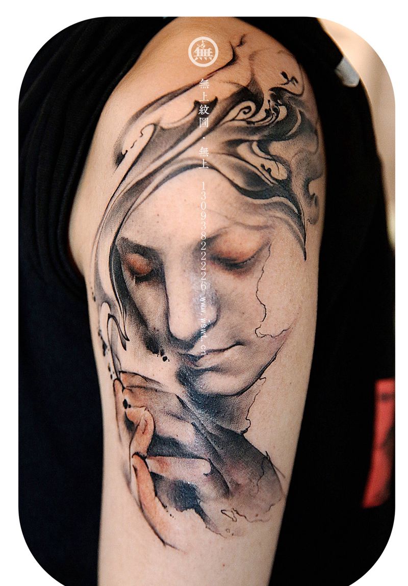 圣母纹身图片_成品手臂人物肖像写实原创宗教纹身图案