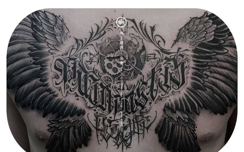 欧美花胸纹身图片_成品胸部欧美原创字符无上纹图书法纹身图案