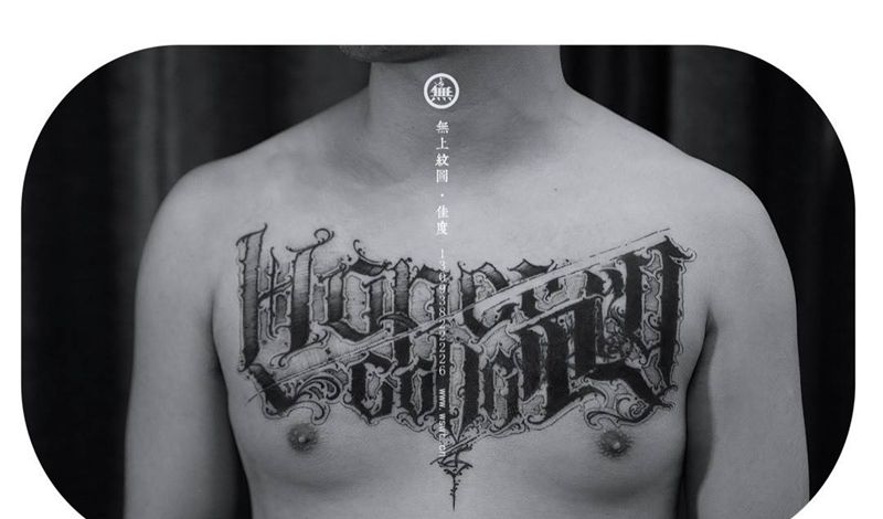 书法花胸纹身图片_成品胸部欧美字符原创无上纹图英文招生纹身图案
