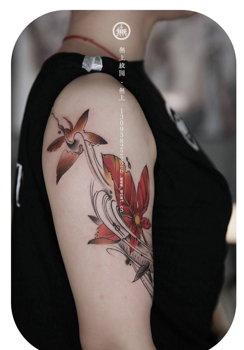 手臂枫叶纹身纹身图片_成品清新植物原创无上纹图水墨手臂纹身图案