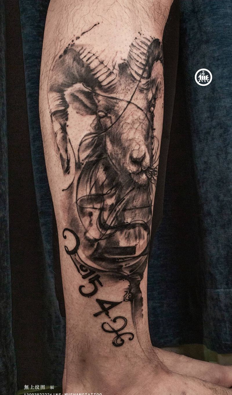 当前位置: 首页 >浙江省台州市纹身店-无上纹图纹身图案>一只帅炸了的羊!纹身图片