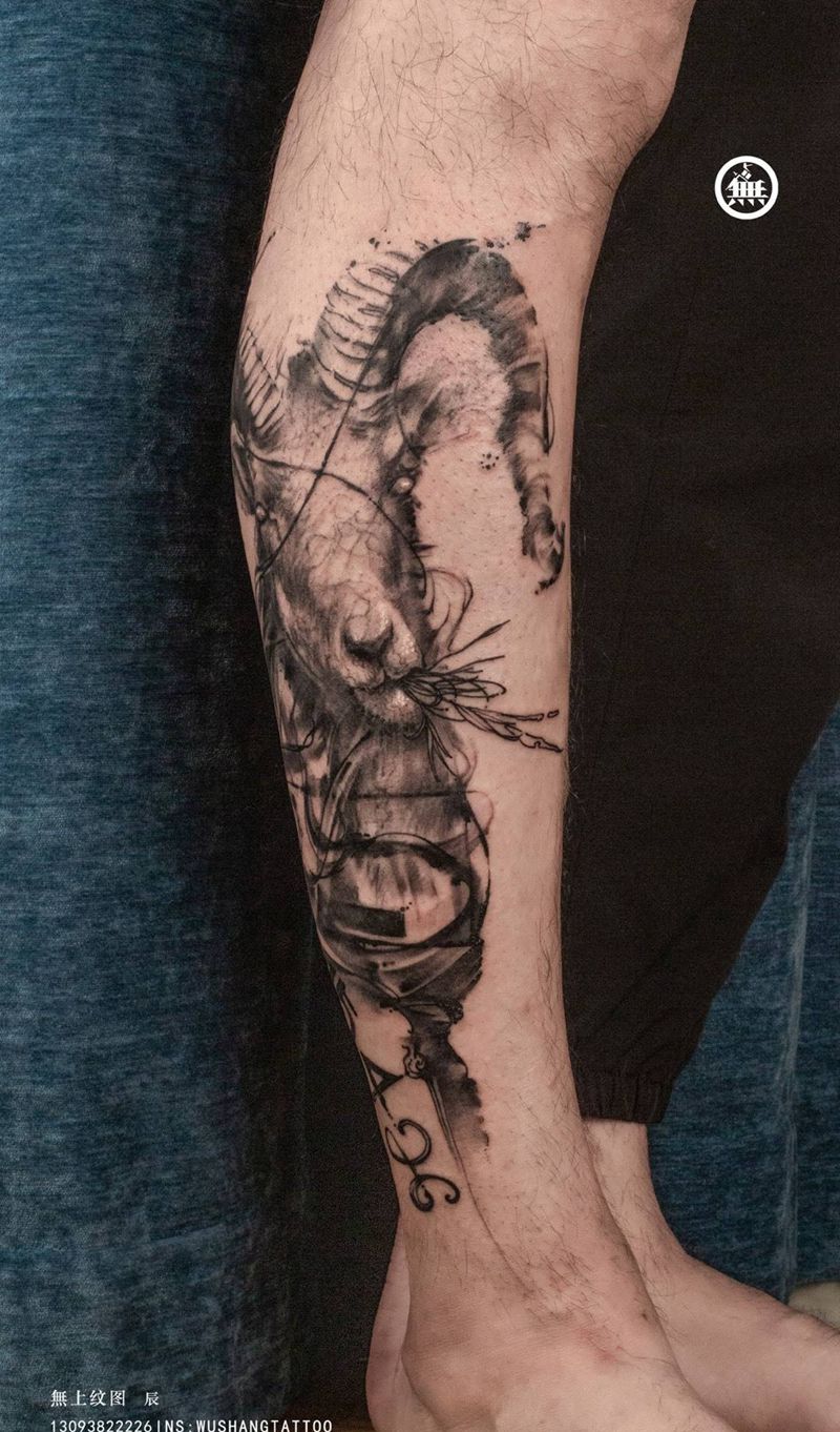 当前位置: 首页 >浙江省台州市纹身店-无上纹图纹身图案>一只帅炸了的羊!纹身图片