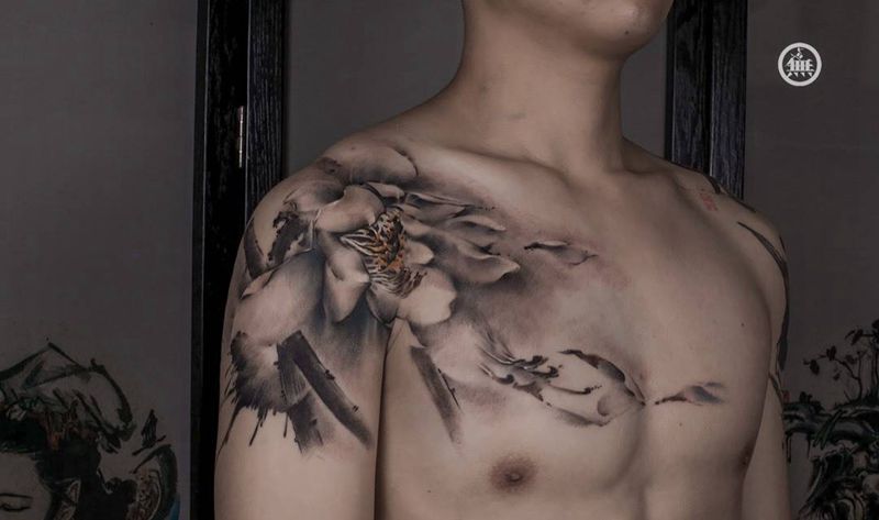 • 女性大花胸纹身_43张霸气漂亮的女性大花胸纹身图案作品