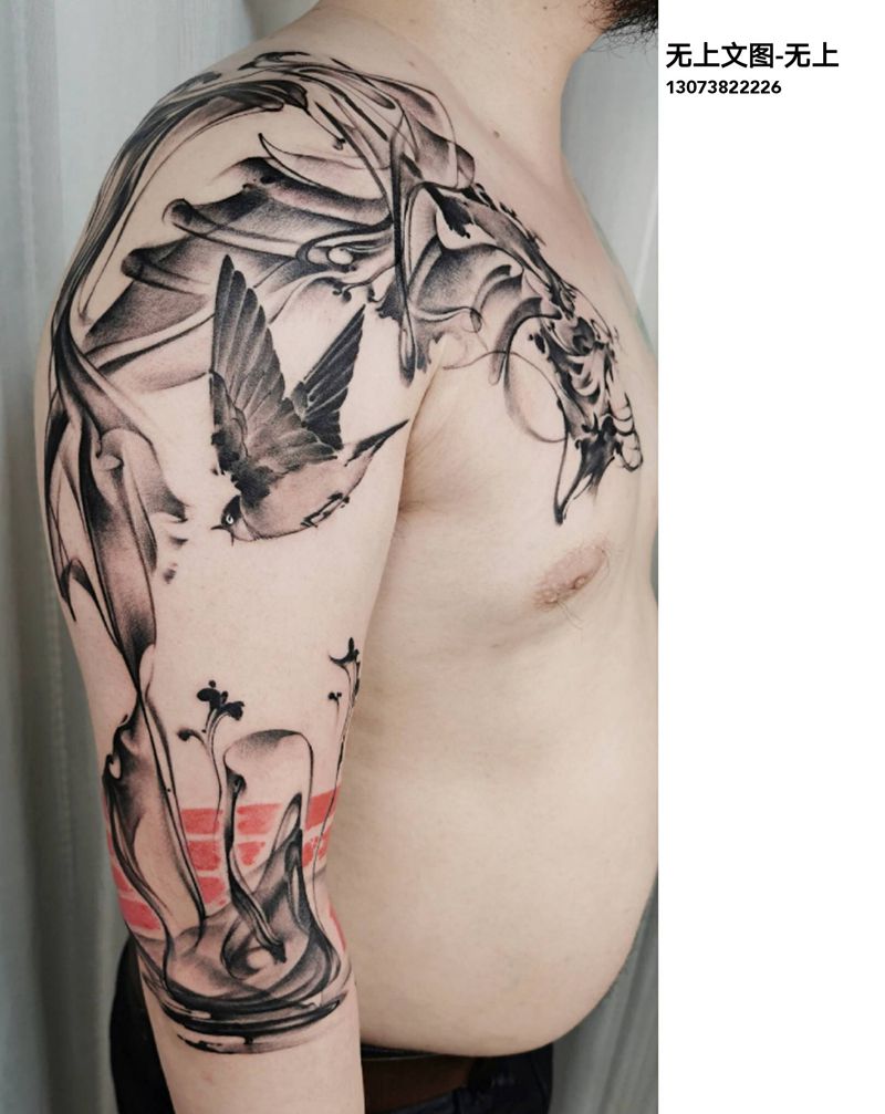 龙首之源纹身图片_肩部手臂水墨纹身图案