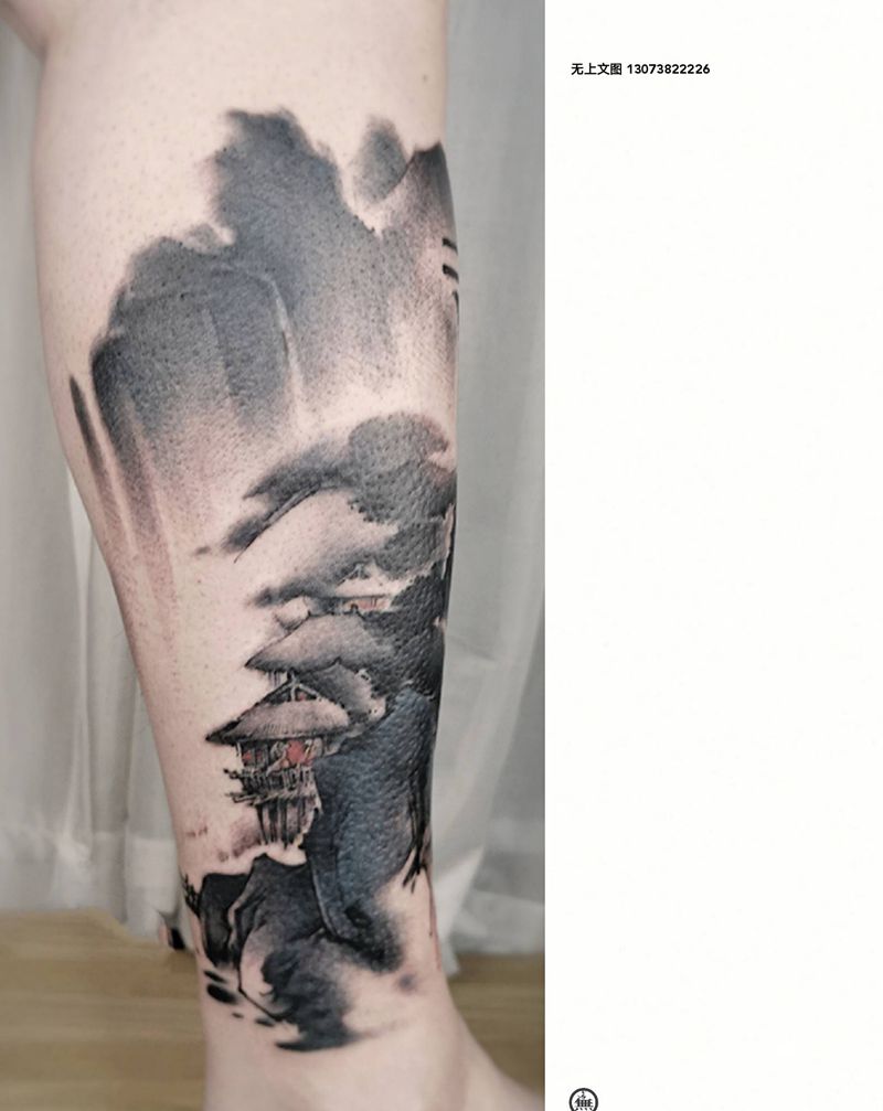 当前位置: 首页 >浙江省台州市纹身店-无上纹图纹身图案>夜色山水纹身图片_腿部水墨纹身图案