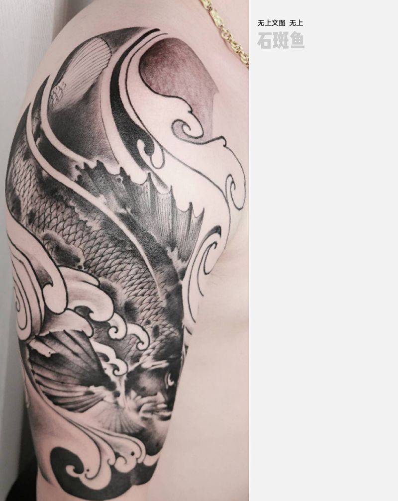 当前位置: 首页 >浙江省台州市纹身店-无上纹图纹身图案>如鱼似水纹身图片_手臂水墨纹身图案