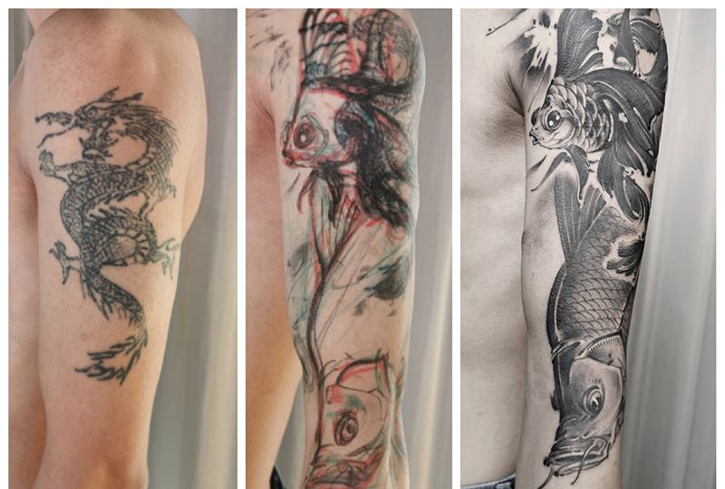 当前位置: 首页 >浙江省台州市纹身店-无上纹图纹身图案>鱼花臂纹身图片_手臂水墨纹身图案