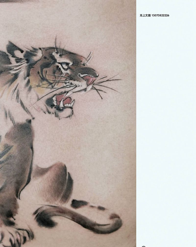 当前位置: 首页 >浙江省台州市纹身店-无上纹图纹身图案>侧腰老虎 王者为谋纹身图片_腰部水墨纹身图案