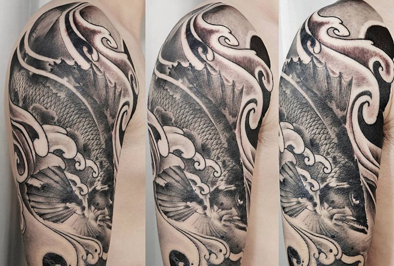 如鱼似水纹身图片_手臂水墨纹身图案