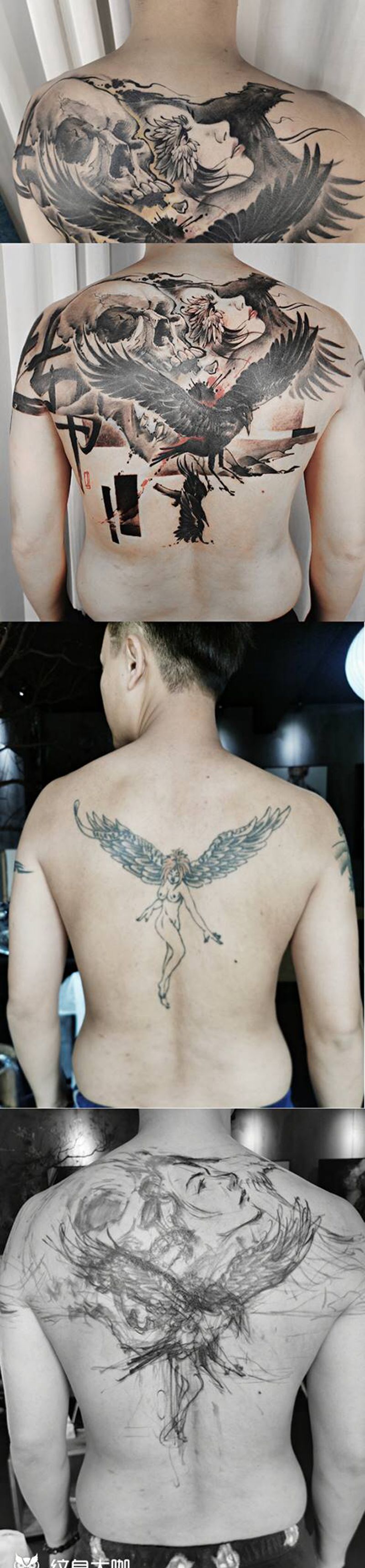 黑灰满背纹身图案