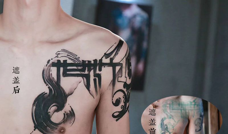 覆盖作品纹身图片_肩部水墨纹身图案