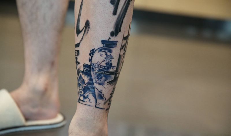 当前位置: 首页 >浙江省台州市纹身店-无上纹图纹身图案>新中式水墨书法与静物作品赏析纹身图片_手臂水墨纹身图案