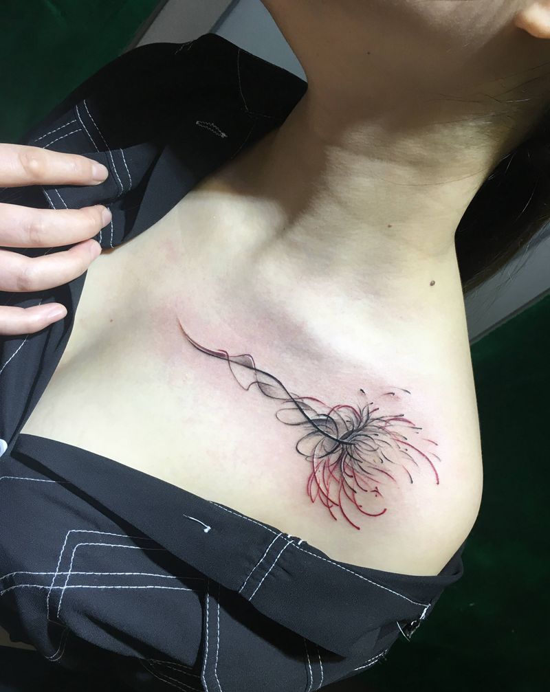 当前位置: 首页 >浙江省台州市纹身店-手艺人纹身工作室纹身图案>彼岸花纹身图片_胸部水墨纹身图案