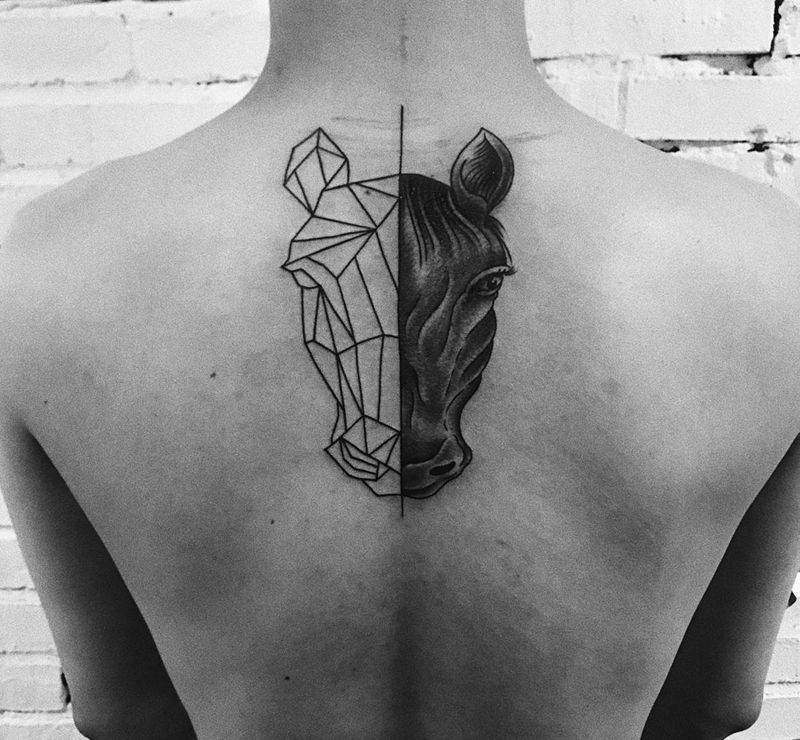 当前位置: 首页 >浙江省台州市纹身店-藏龙刺青工作室纹身图案>马子纹身图片_背部Old School马线条抽象纹身图案