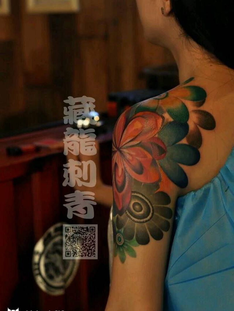 • 纹身吧推荐的披肩图腾半胛纹身图案作品展示
