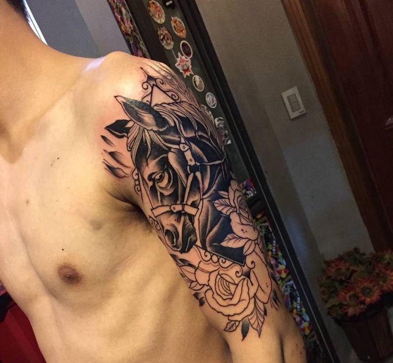• 纹身吧推荐的披肩图腾半胛纹身图案作品展示