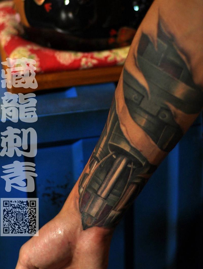 当前位置: 首页 >浙江省台州市纹身店-藏龙刺青工作室纹身图案>机械臂纹身图片
