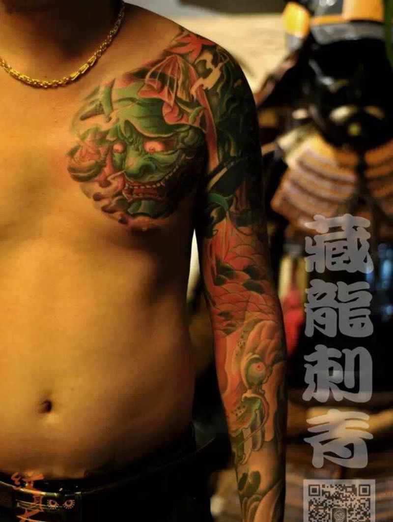 当前位置: 首页 >浙江省台州市纹身店-藏龙刺青工作室纹身图案>彩色半胛花臂纹身图片