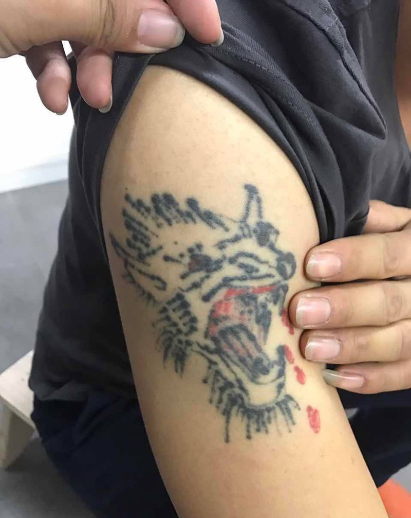 当前位置: 首页 >浙江省台州市纹身店-M刺青 俺耀文身临海店纹身图案>狼头遮盖纹身图片