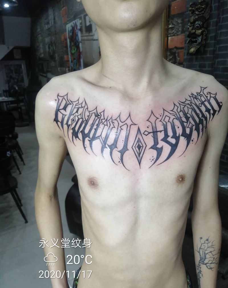 花体字母纹身图片_胸部肩部新传统花体字纹身图案
