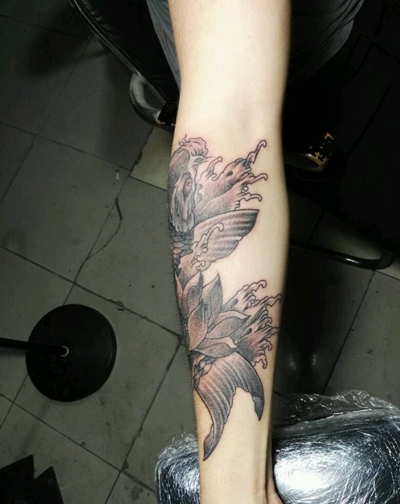 鲤鱼纹身。纹身图片_背部臀部手臂腿部传统动物成品纹身图案