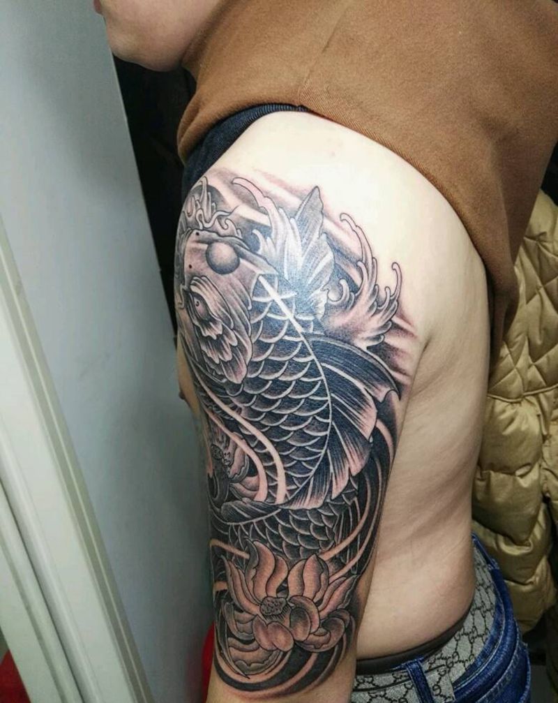 鲤鱼,纹身图片_背部臀部手臂腿部传统动物植物成品纹身图案