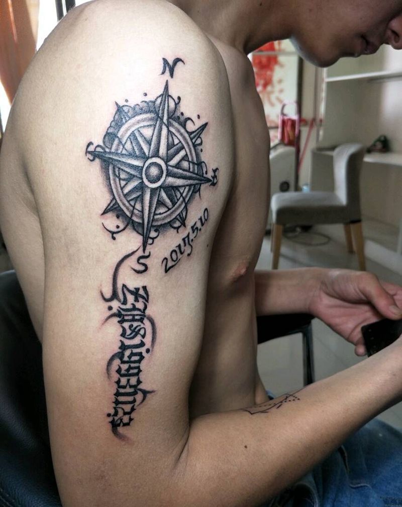 当前位置: 首页 >安徽省芜湖市纹身店-芜湖市永义堂刺青纹身店纹身图案>指南针加字母纹身图片