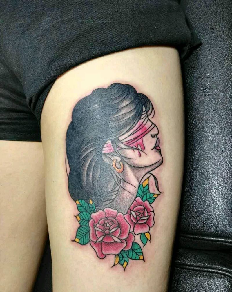 • T包小腿吹火男+阿多福纹身图片_腿部老传统新传统吹火男阿