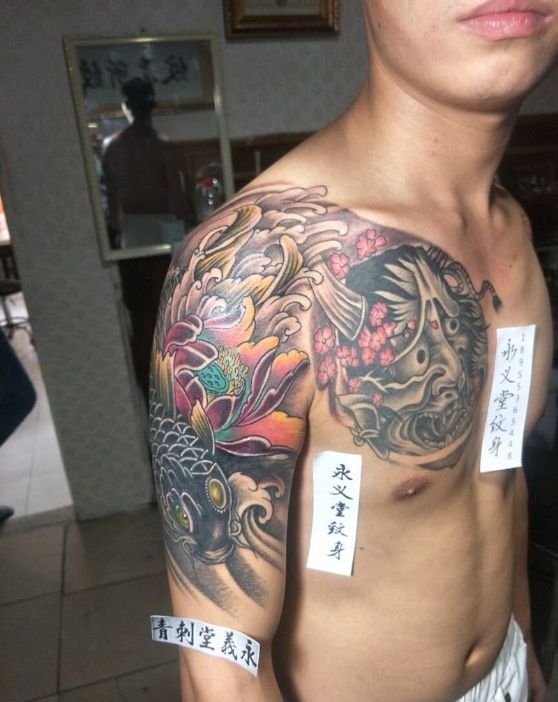 当前位置: 首页 >安徽省芜湖市纹身店-芜湖市永义堂刺青纹身店纹身图案>半甲纹身图片_胸部手臂传统动物植物芜湖宣城芜湖刺青宣城刺青成品纹身图案