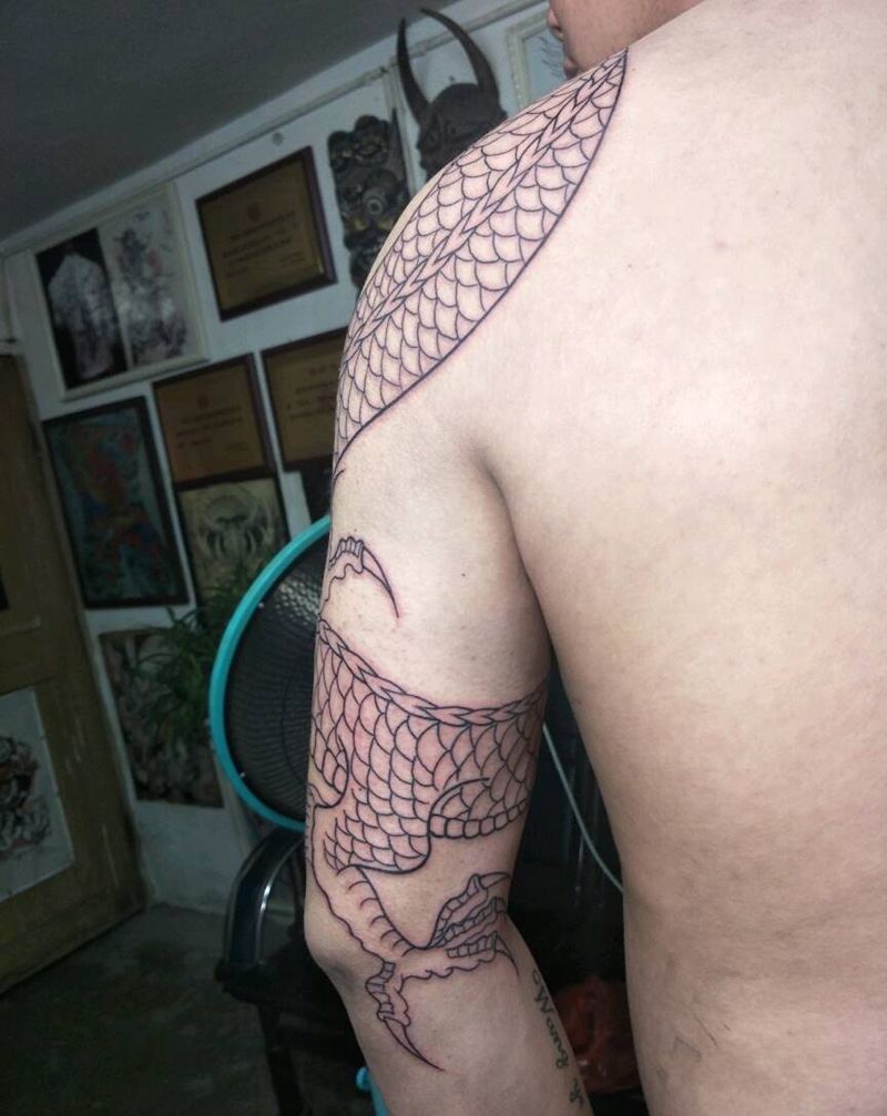 当前位置: 首页 >安徽省芜湖市纹身店-芜湖市永义堂刺青纹身店纹身图案>线条纹好,马上上色纹身图片