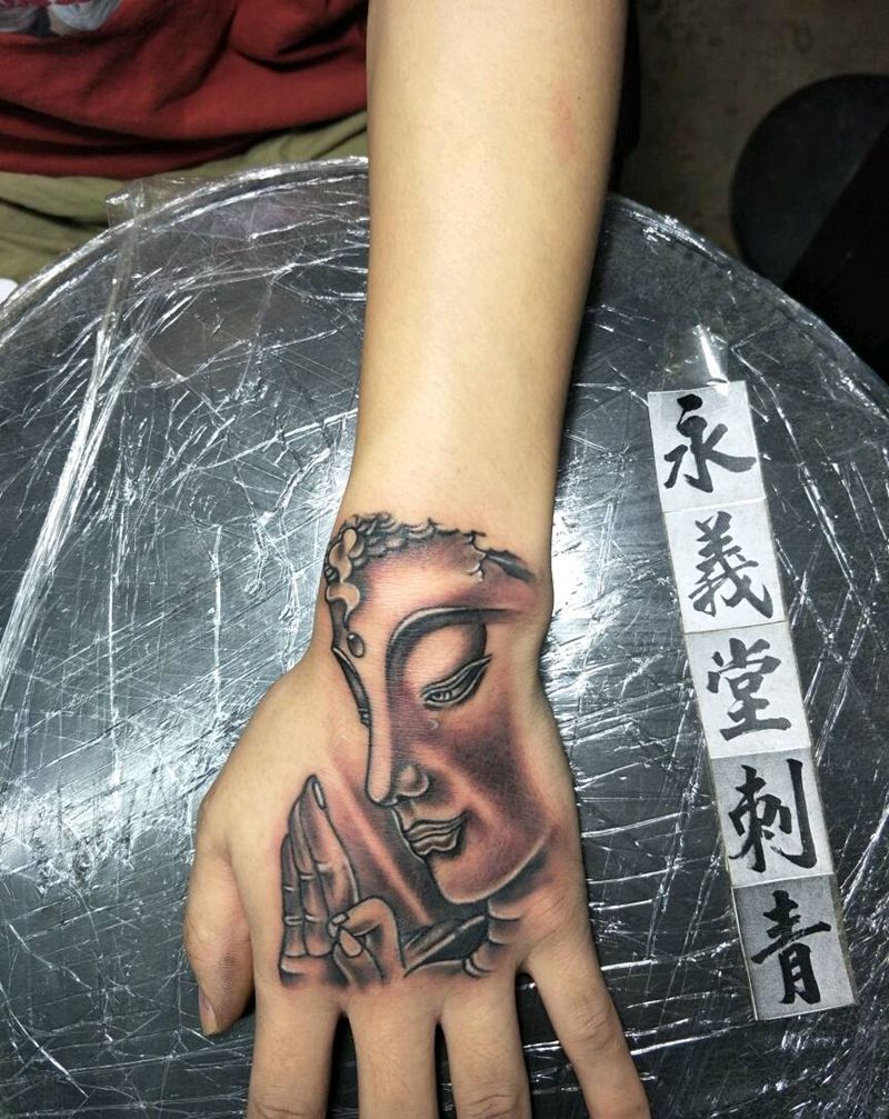 当前位置: 首页 >安徽省芜湖市纹身店-芜湖市永义堂刺青纹身店纹身图案>佛,客户坚持非要纹,我也劝了纹身图片