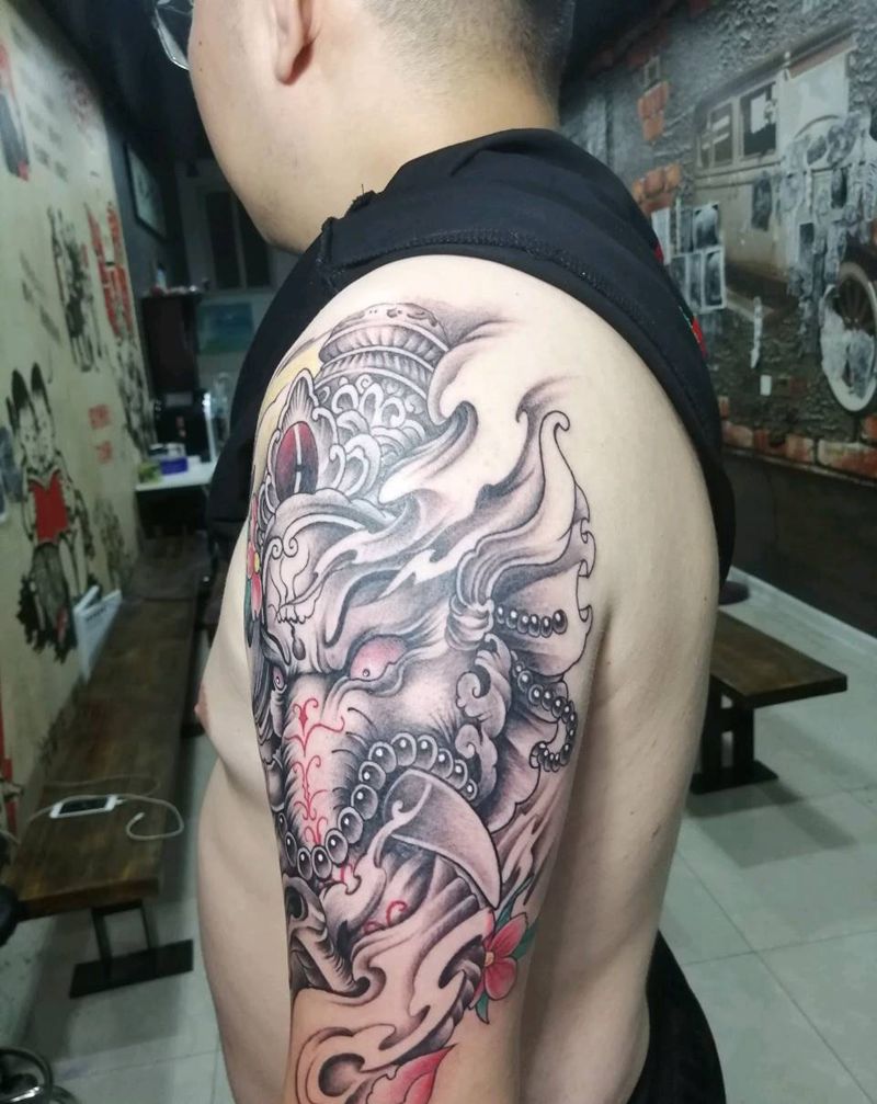 当前位置: 首页 >安徽省芜湖市纹身店-芜湖市永义堂刺青纹身店纹身图案>象神纹身图片_手臂腿部新传统老传统纹身图案
