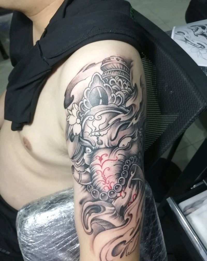 当前位置: 首页 >安徽省芜湖市纹身店-芜湖市永义堂刺青纹身店纹身图案>象神纹身图片_手臂腿部新传统老传统纹身图案