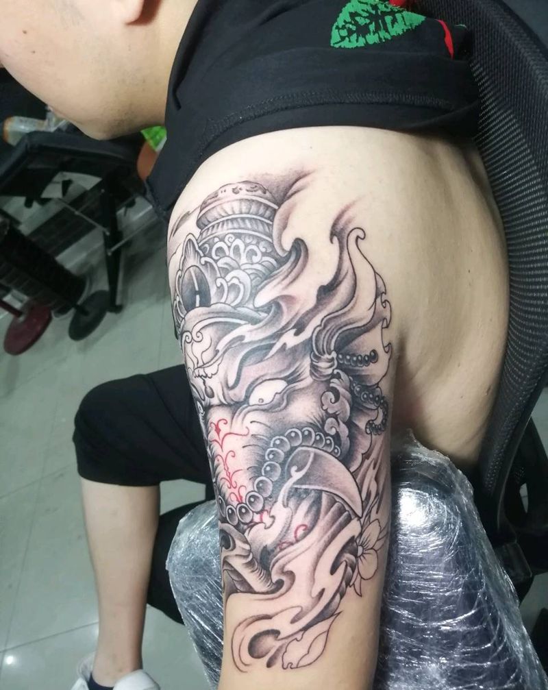 当前位置: 首页 >安徽省芜湖市纹身店-芜湖市永义堂刺青纹身店纹身图案>象神纹身图片_手臂腿部新传统老传统纹身图案