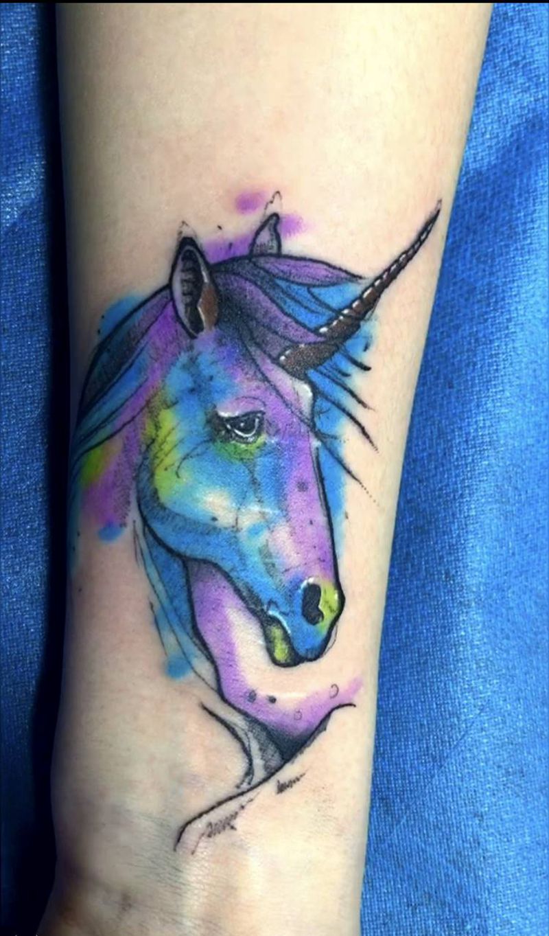 当前位置: 首页 >安徽省芜湖市纹身店-芜湖龍刺青纹身图案>独角兽纹身图片_手臂水彩纹身图案