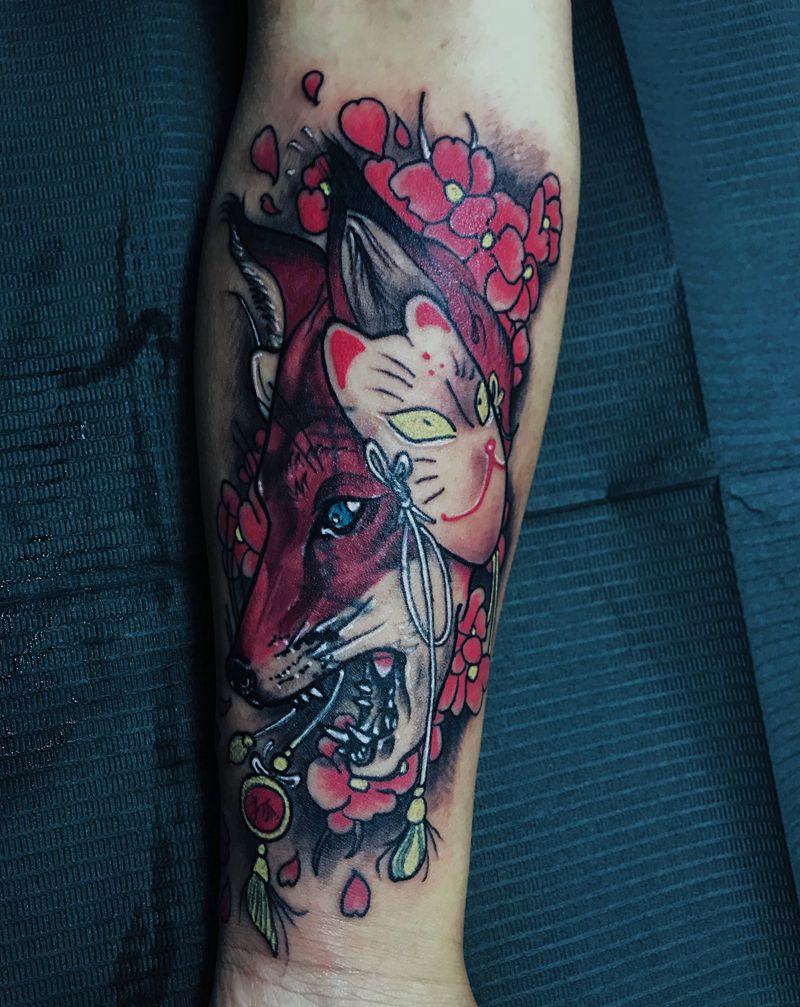 当前位置: 首页 >安徽省芜湖市纹身店-芜湖龍刺青纹身图案>狐狸纹身图片_手臂New School纹身图案