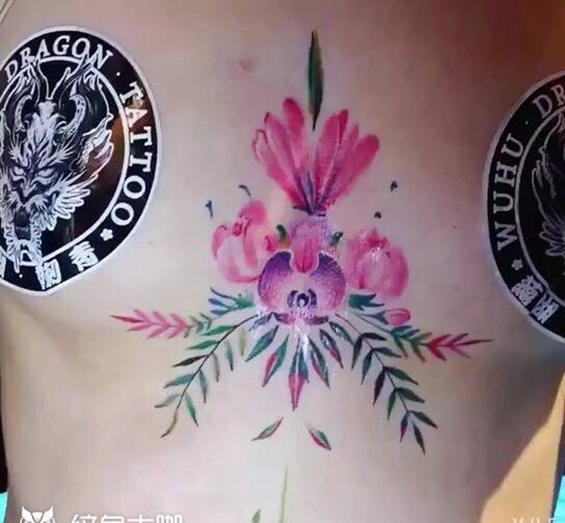 • 女性大花胸纹身_43张霸气漂亮的女性大花胸纹身图案作品