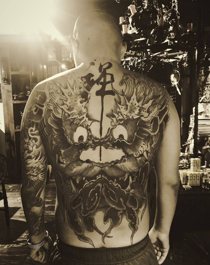 • 黑灰满背纹身图案