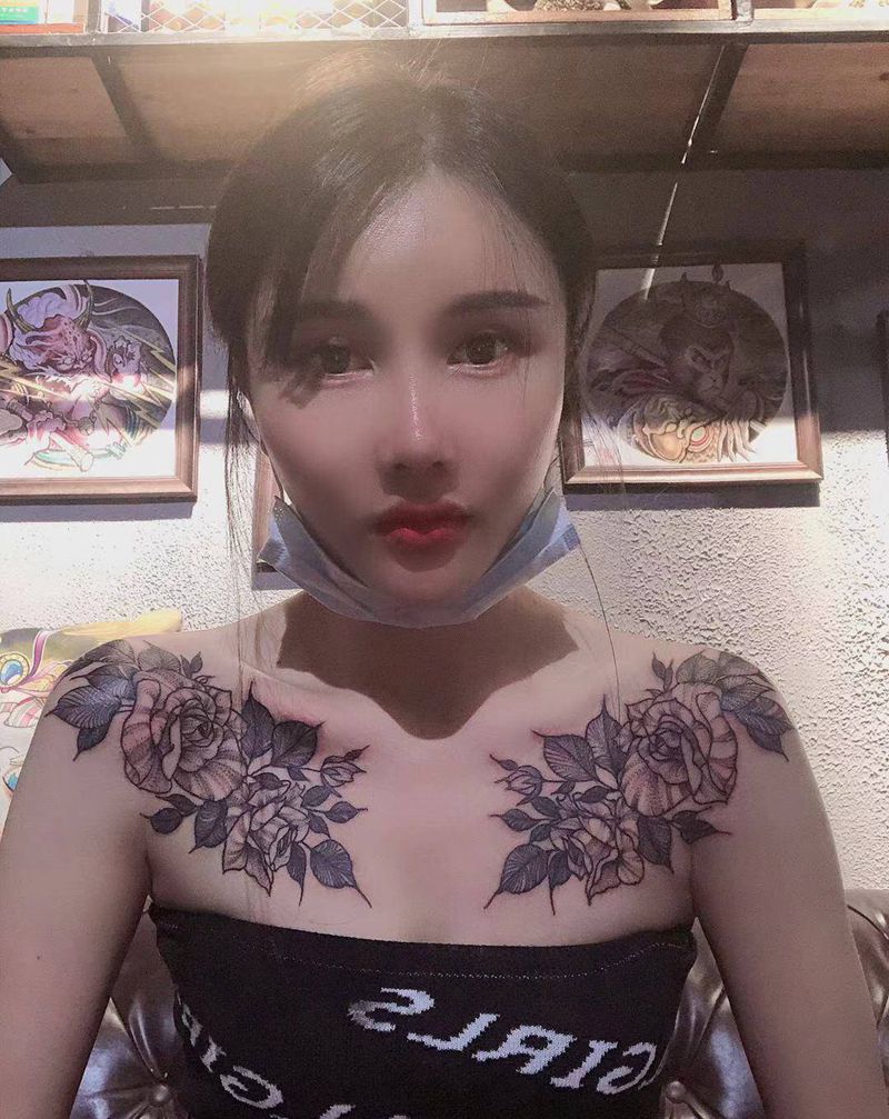 • 女性大花胸纹身_43张霸气漂亮的女性大花胸纹身图案作品