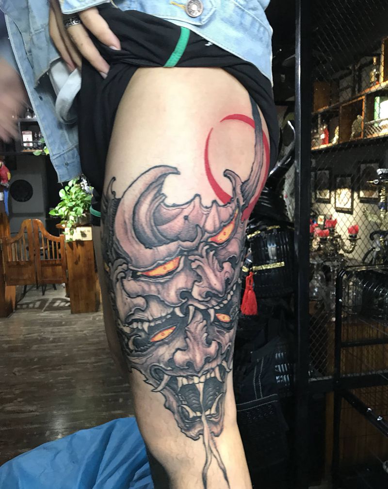 • T网红王老大花腿龙纹身图片_腿部新传统纹身图案