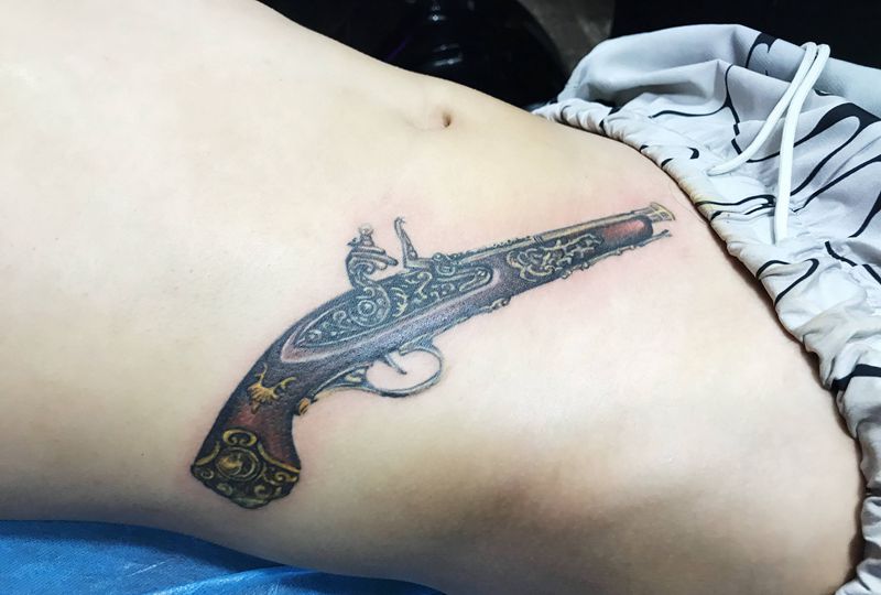 当前位置: 首页 >安徽省芜湖市纹身店-芜湖龍刺青纹身图案>复古枪纹身图片_腹部欧美写实纹身图案
