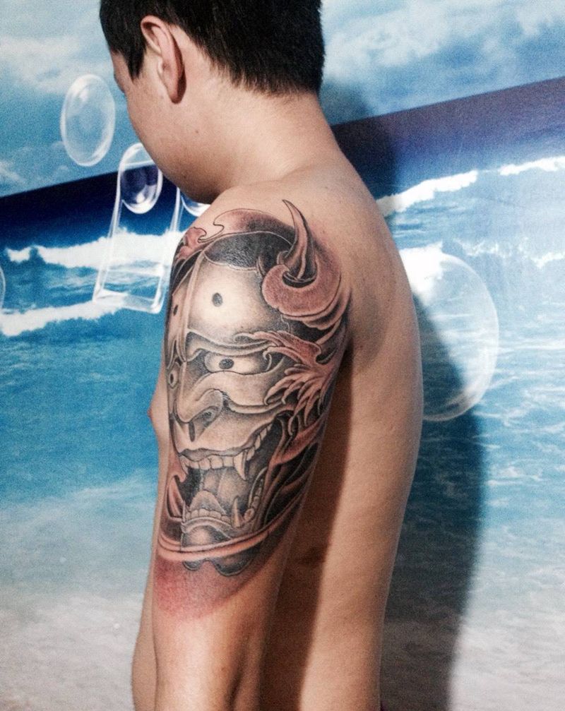 般诺纹身图片_成品手臂传统鬼神纹身图案