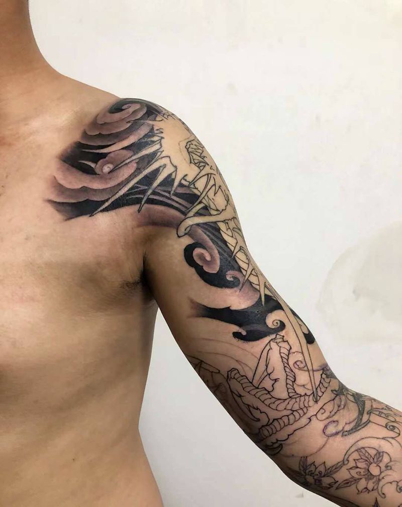 当前位置: 首页 >安徽省安庆市纹身店-辰针刺青处纹身图案>花臂龙纹身图片_手臂新传统龙纹身图案