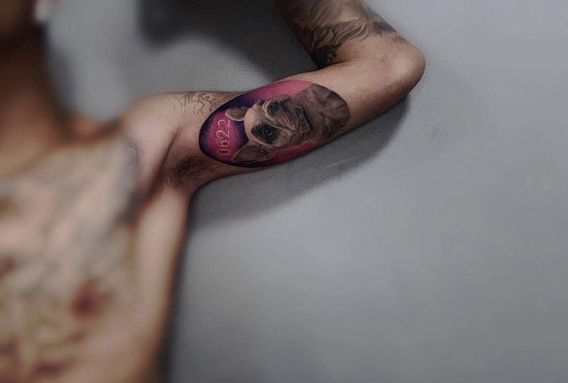 会一直留在你身边纹身图片_手臂欧美写实宠物 法斗纹身图案