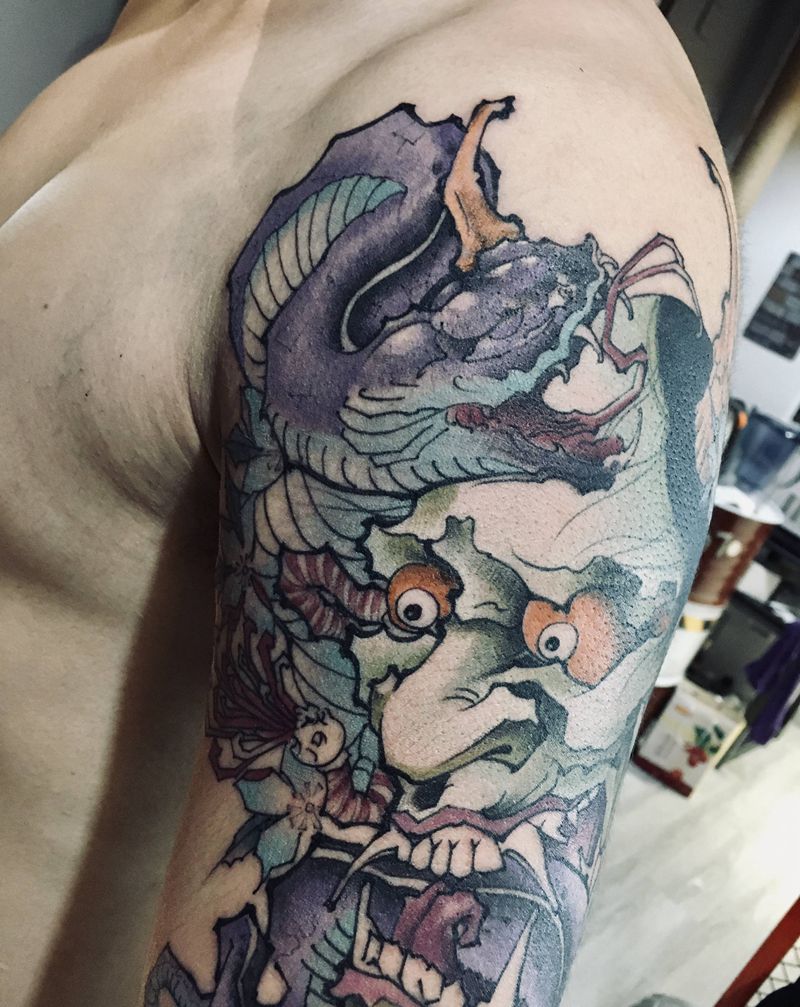 当前位置: 首页 >安徽省滁州市纹身店-707_tattoo纹艺纹身图案>大臂般若纹身图片_手臂新传统纹身图案