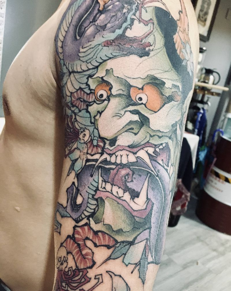 当前位置: 首页 >安徽省滁州市纹身店-707_tattoo纹艺纹身图案>大臂般若纹身图片_手臂新传统纹身图案