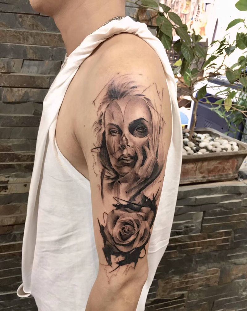 写实花臂进度一纹身图片_手臂欧美写实人物写实花臂纹身图案